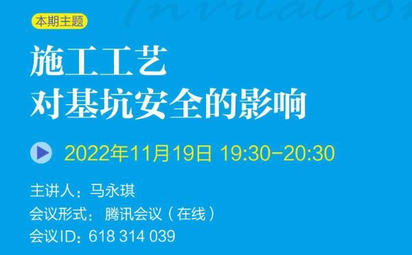 發(fā)布日期:2022-12-14 15:14巖土錨固學(xué)苑將于2022年11月19日(周六)19:30-20:30舉辦第6期,本期主題:施工工藝對基坑安全的影響,歡迎廣大巖土錨固領(lǐng)域愛好者參與交流...