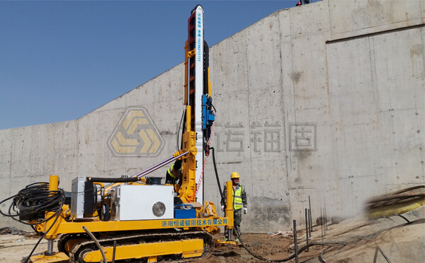 自鉆式錨桿施工技術是一種新型的錨固技術,該技術實現的關鍵是要有自鉆式錨桿施工設備,如鉆機。目前國內市場缺乏有效的自鉆式錨桿施工鉆機,針對此情況,恒諾投入大量人力財力,與業(yè)內廠家合作,經百余次應用現場調研及試驗,歷經一年時間研發(fā)出自鉆式錨桿專用鉆機,讓自鉆式錨桿施工效率更高。
